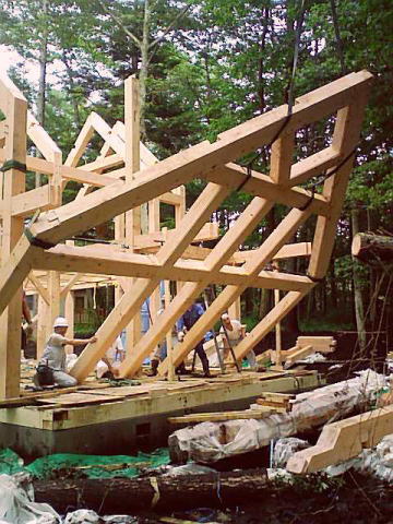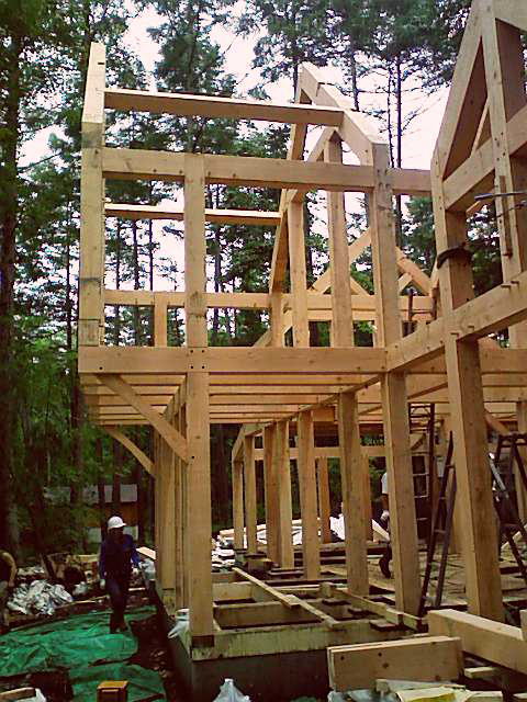 しかし、残念ながら今日本でオーク材を使ってティンバーフレームハウスを建てることは簡単でない。東北、北海道ではいまだにミズナラの良材が算出されるがいかんせん量が少ない。製材所へいってオークで楢材で家を建てたいから木材をくれ、なぞというと目を向かれるだろう。 しかしながら、アメリカではオーク材でティンバーフレームを建てることは、東海岸ではそれほど珍しくないようだ。アパラチア山脈ではオークの大径木が産出されるらしく、これを用いてティンバーフレームを建てているビルダーが散見される。 その中の1つHearthstone社と提携しているビルダーが日本でも、オーク材でのティンバーフレーム住宅を提供している。